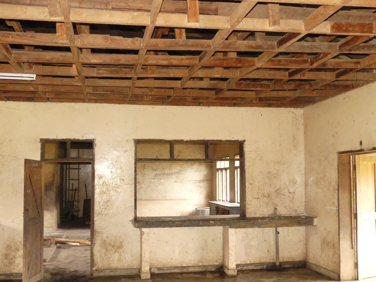 Die Einrichtungen der Schule konnten nicht mehr gepflegt werden – unten ein Bild der Ausgabestelle der Kantine.